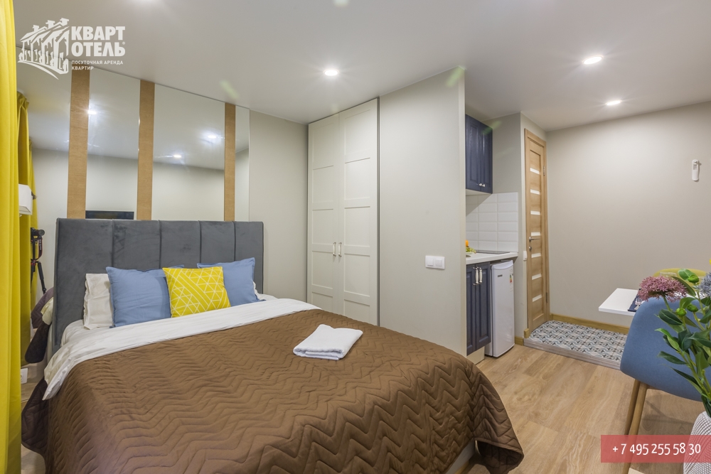 Квартира предназначена для проживания 1 человек при размещении на отдельных спальных местах или 2 человек при совместном размещении на двуспальных местах. В квартире: двуспальная кровать.