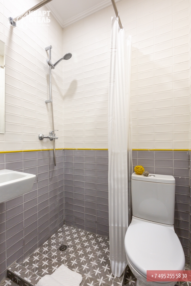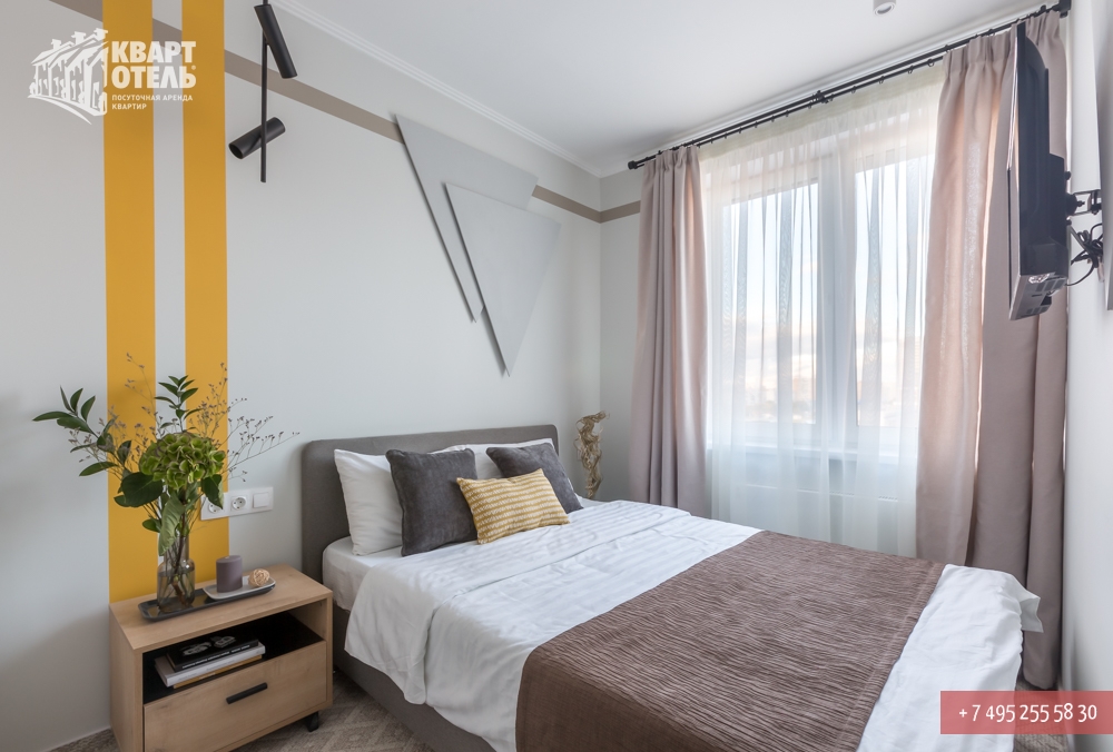 Квартира предназначена для проживания 1 человека при размещении на отдельных спальных местах или 2 человек при совместном размещении на двуспальных местах. В квартире: одна двуспальная кровать.