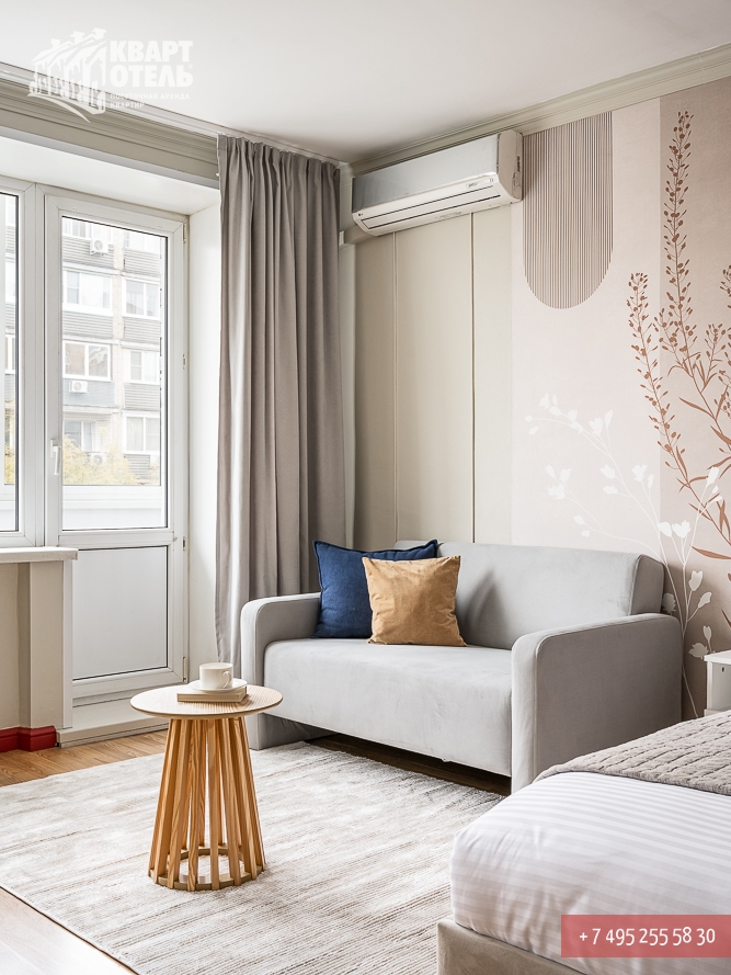 Квартира предназначена для проживания 2 человек при размещении на отдельных спальных местах или 1-3 человек при совместном размещении на двуспальных местах. В квартире: двуспальная кровать и односпальный диван.