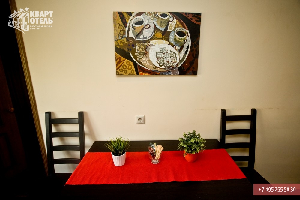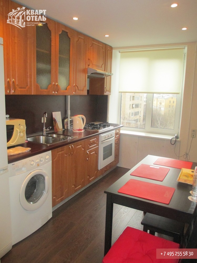 Забронировать эту квартиру Вы можете в службе бронирования по телефону +7 (495) 255 58 30 в будни с 9 до 20 часов, в выходные и праздничные дни с 10 до 18 часов. Оплатить проживание можно безналичным перечислением на наш расчетный счет, наличными в офисе или при заселении на квартире, платежными картами VISA, MasterCard, электронным переводом по системе Яндекс-Деньги. Более подробную информацию о бронировании и способах оплаты Вы можете получить в разделах Услуги и Оплата и скидки.