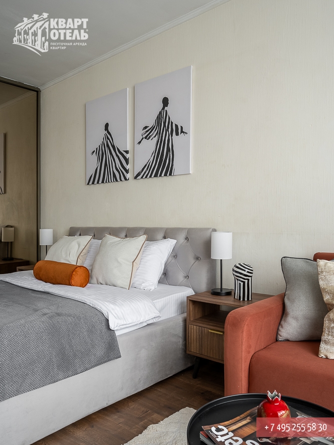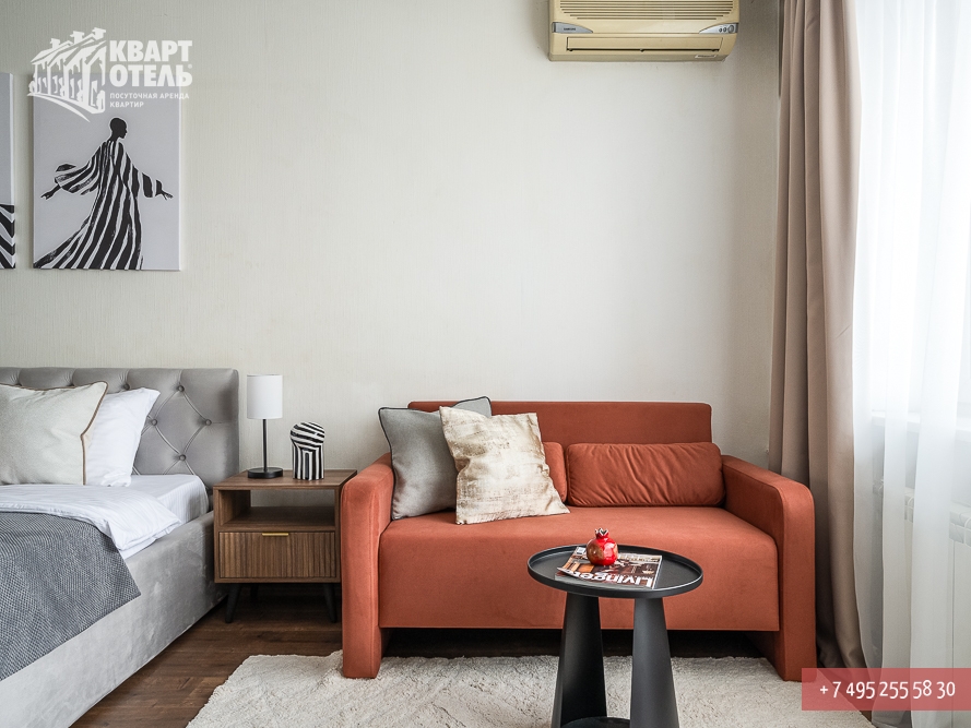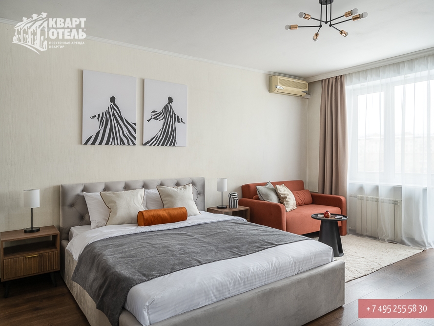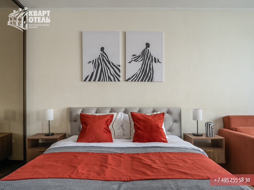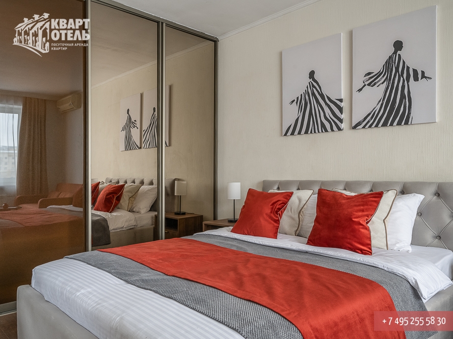 Забронировать эту квартиру Вы можете в службе бронирования по телефону +7 (495) 255 58 30 в будни с 9 до 20 часов, в выходные и праздничные дни с 10 до 18 часов. Оплатить проживание можно безналичным перечислением на наш расчетный счет, наличными в офисе или при заселении на квартире, платежными картами VISA, MasterCard, электронным переводом по системе Яндекс-Деньги. Более подробную информацию о бронировании и способах оплаты Вы можете получить в разделах Услуги и Оплата и скидки.