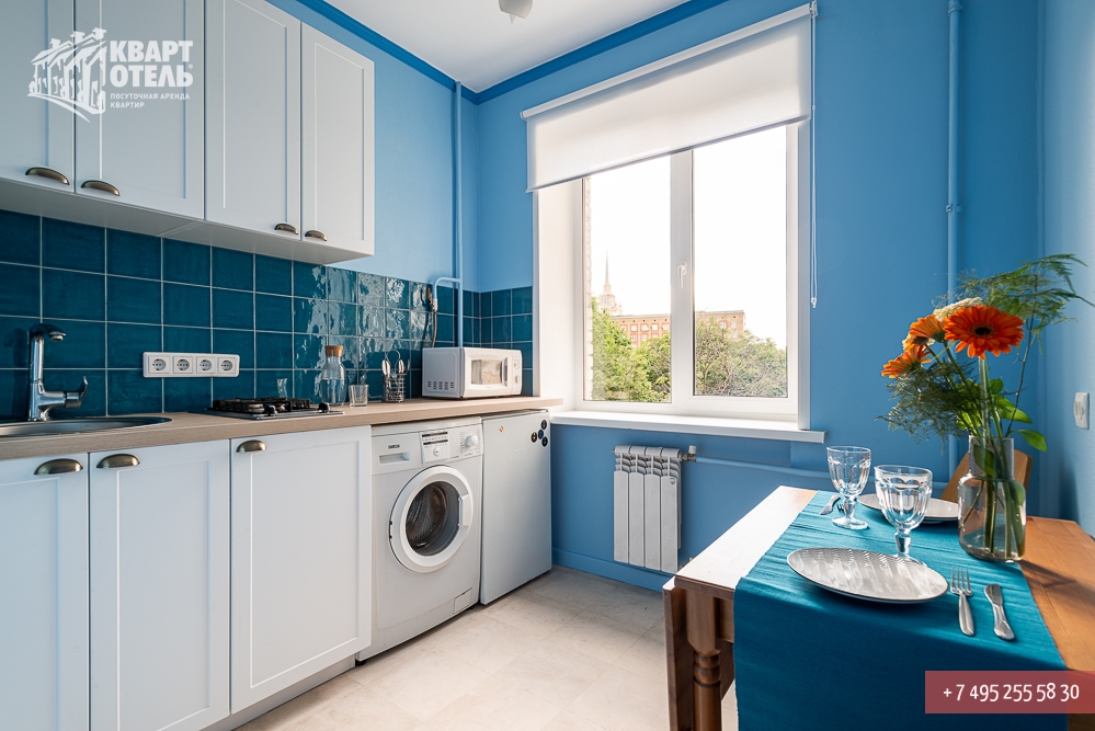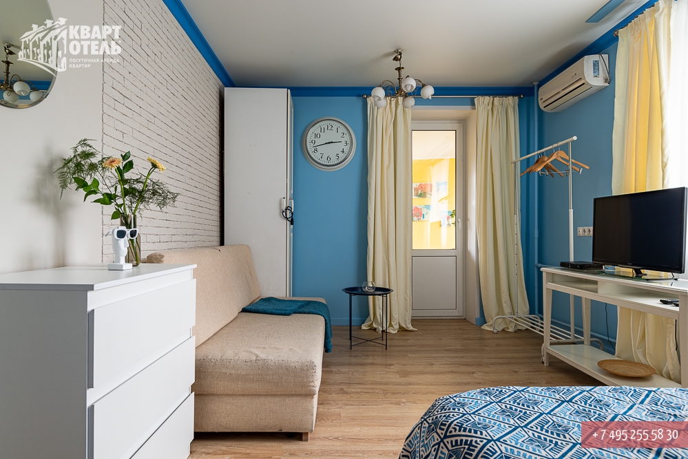 Забронировать эту квартиру Вы можете в службе бронирования по телефону +7 (495) 255 58 30 в будни с 9 до 20 часов, в выходные и праздничные дни с 10 до 18 часов. Оплатить проживание можно безналичным перечислением на наш расчетный счет, наличными в офисе или при заселении на квартире, платежными картами VISA, MasterCard, электронным переводом по системе Яндекс-Деньги. Более подробную информацию о бронировании и способах оплаты Вы можете получить в разделах Услуги и Оплата и скидки.