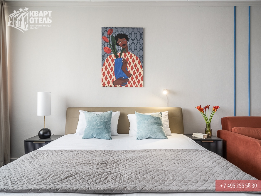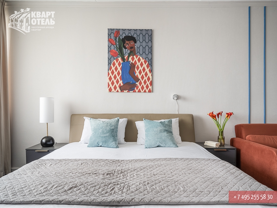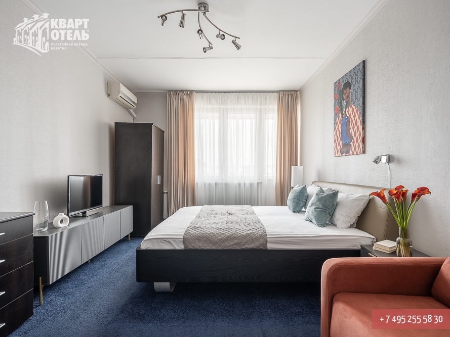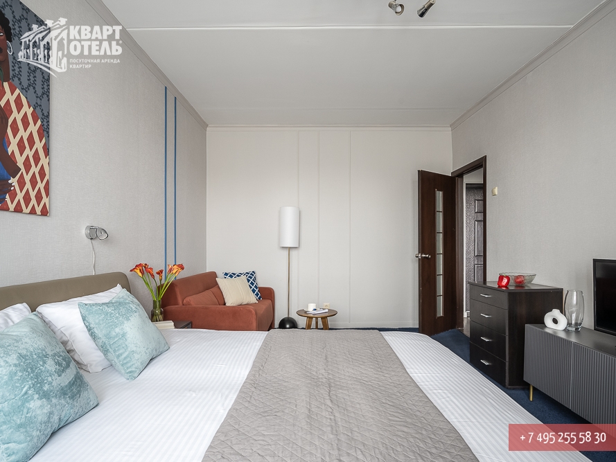 Забронировать эту квартиру Вы можете в службе бронирования по телефону +7 (495) 255 58 30 в будни с 9 до 20 часов, в выходные и праздничные дни с 10 до 18 часов. Оплатить проживание можно безналичным перечислением на наш расчетный счет, наличными в офисе или при заселении на квартире, платежными картами VISA, MasterCard, электронным переводом по системе Яндекс-Деньги. Более подробную информацию о бронировании и способах оплаты Вы можете получить в разделах Услуги и Оплата и скидки.