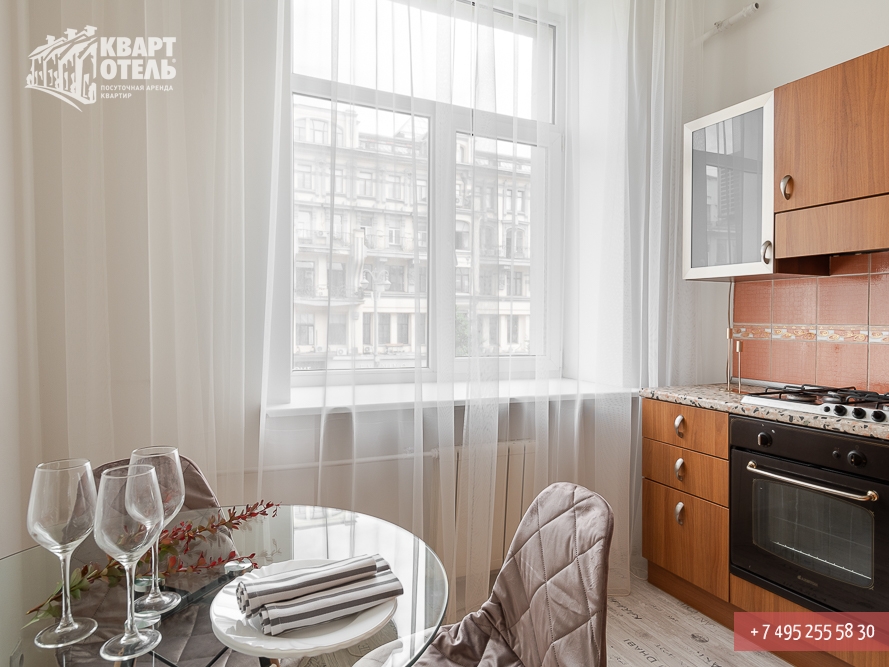 Квартира расположена в историческом центре Москвы с развитой инфраструктурой вблизи крупных бизнес-центров. В непосредственной близости от квартиры: аптека, парковка, банкомат. Рядом находятся Торговый Центр «Тверской Пассаж», рестораны «Nightflight» и «Бурят», сеть кофеин «КофеХауз». Квартира находится на знаментитой улице Москвы - Тверской, которая ведет к Красной площади и Кремлю. Рядом находятся Большой театр, Патриаршие пруды, театры «Сатиры» и «Моссовета», концертный зал им. Чайковского. В шаговой доступности музей современной истории России, театр им. Станиславского, театры МХАТ им.Горького и им.Чехова.