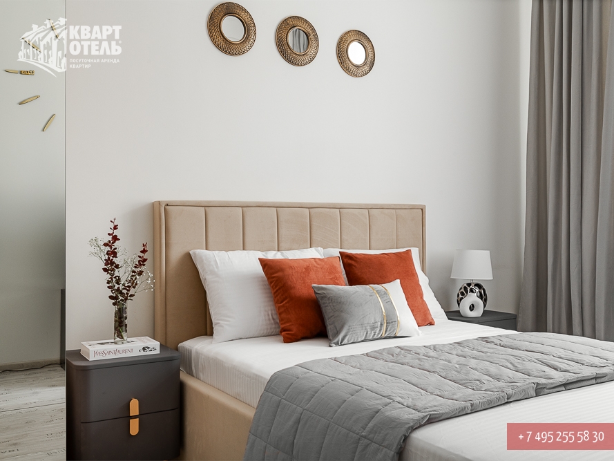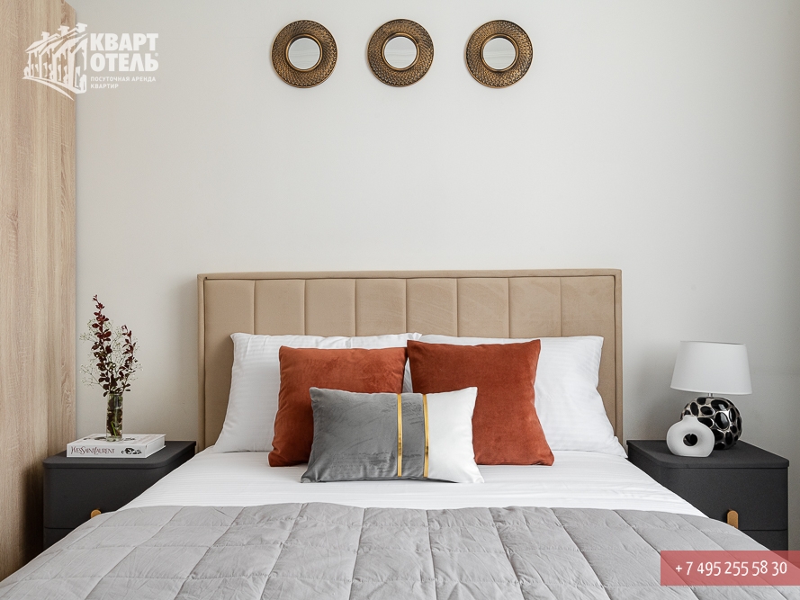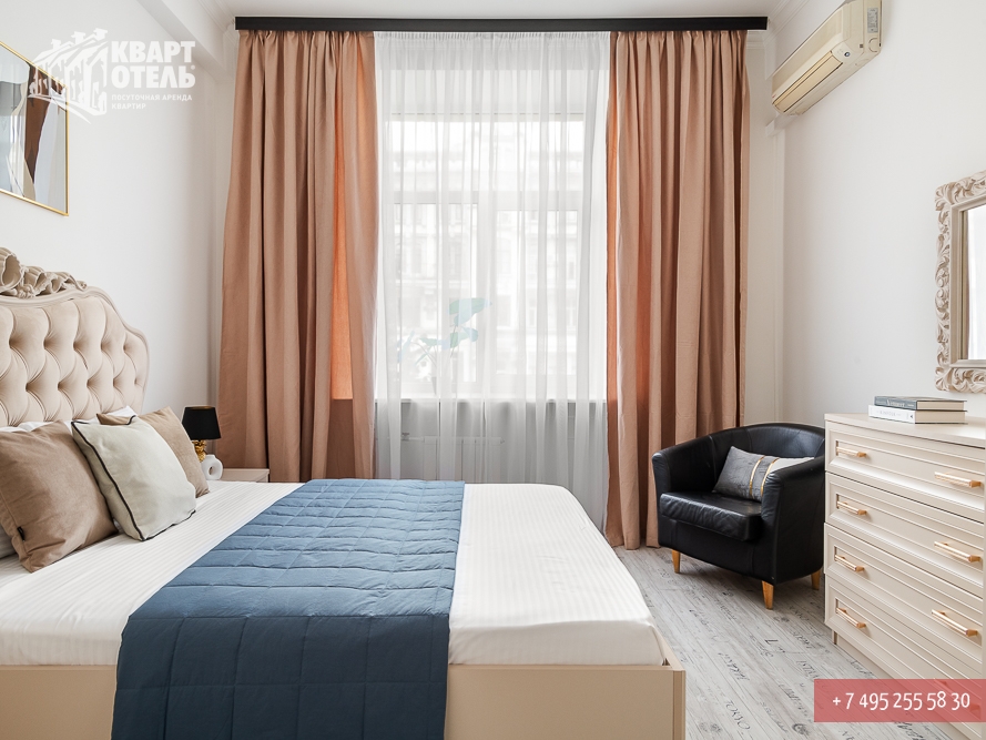 Забронировать эту квартиру Вы можете в службе бронирования по телефону +7 (495) 255 58 30 в будни с 9 до 20 часов, в выходные и праздничные дни с 10 до 18 часов. Оплатить проживание можно безналичным перечислением на наш расчетный счет, наличными в офисе или при заселении на квартире, платежными картами VISA, MasterCard, электронным переводом по системе Яндекс-Деньги. Более подробную информацию о бронировании и способах оплаты Вы можете получить в разделах Услуги и Оплата и скидки.