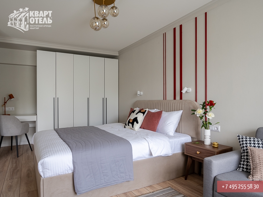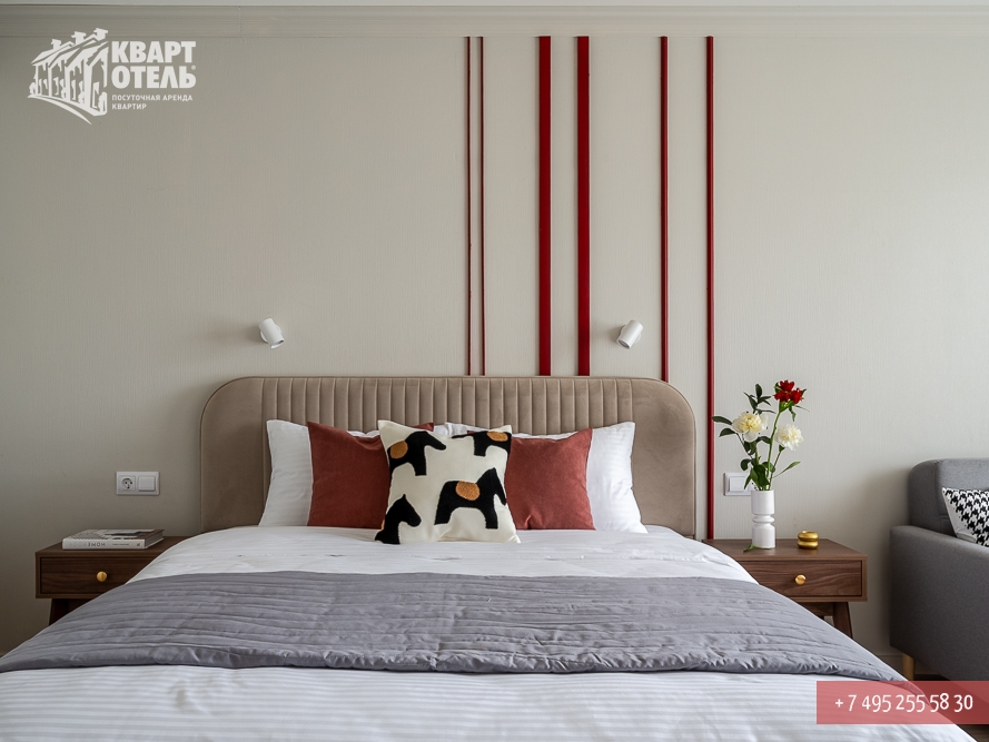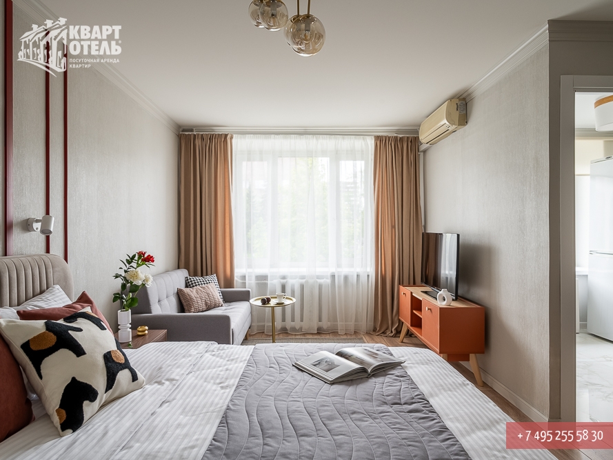Забронировать эту квартиру Вы можете в службе бронирования по телефону +7 (495) 255 58 30 в будни с 9 до 20 часов, в выходные и праздничные дни с 10 до 18 часов. Оплатить проживание можно безналичным перечислением на наш расчетный счет, наличными в офисе или при заселении на квартире, платежными картами VISA, MasterCard, электронным переводом по системе Яндекс-Деньги. Более подробную информацию о бронировании и способах оплаты Вы можете получить в разделах Услуги и Оплата и скидки.