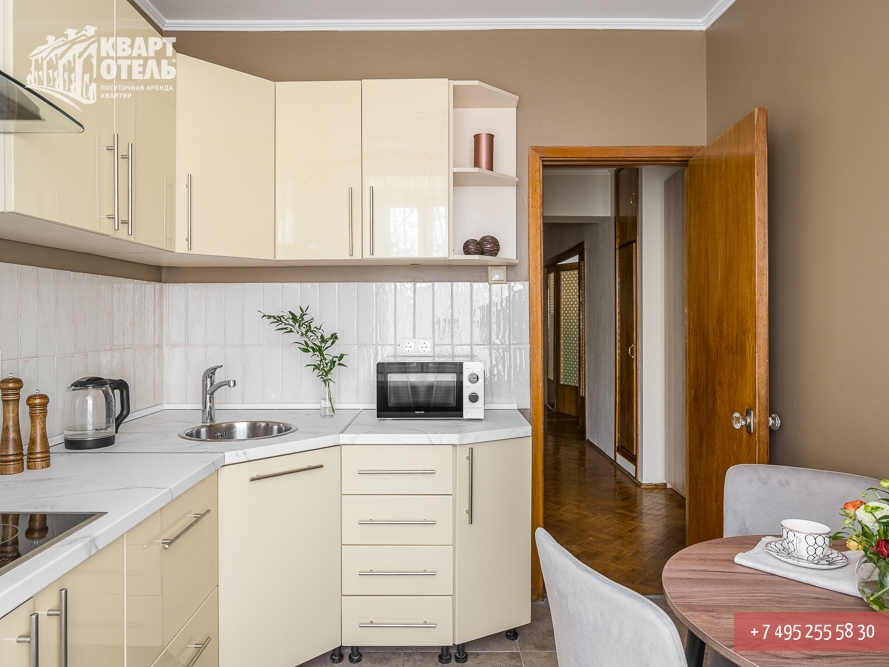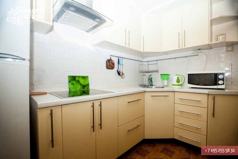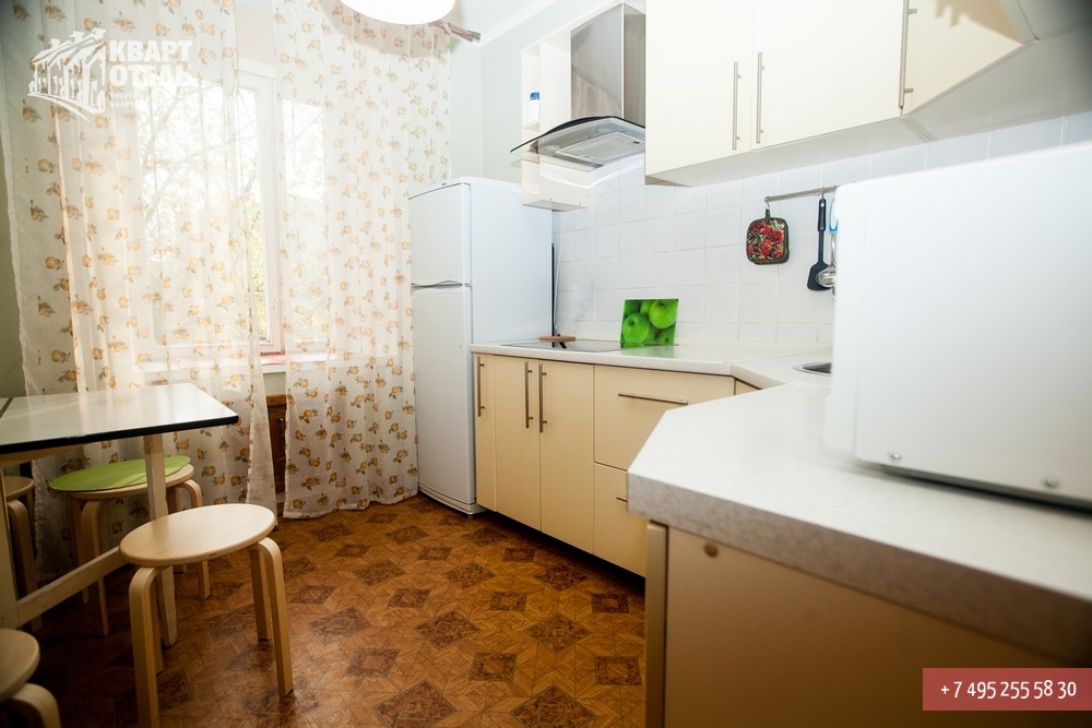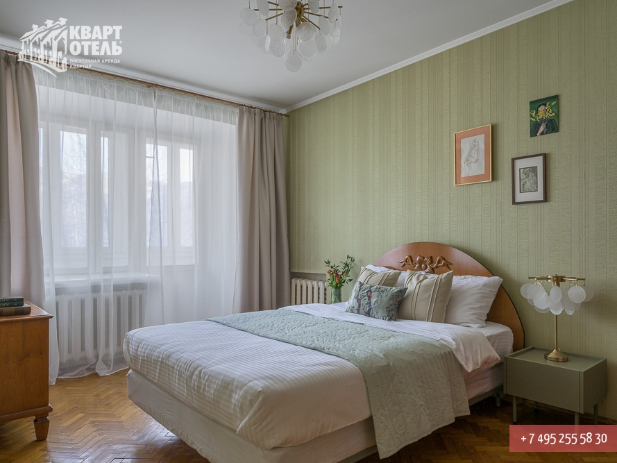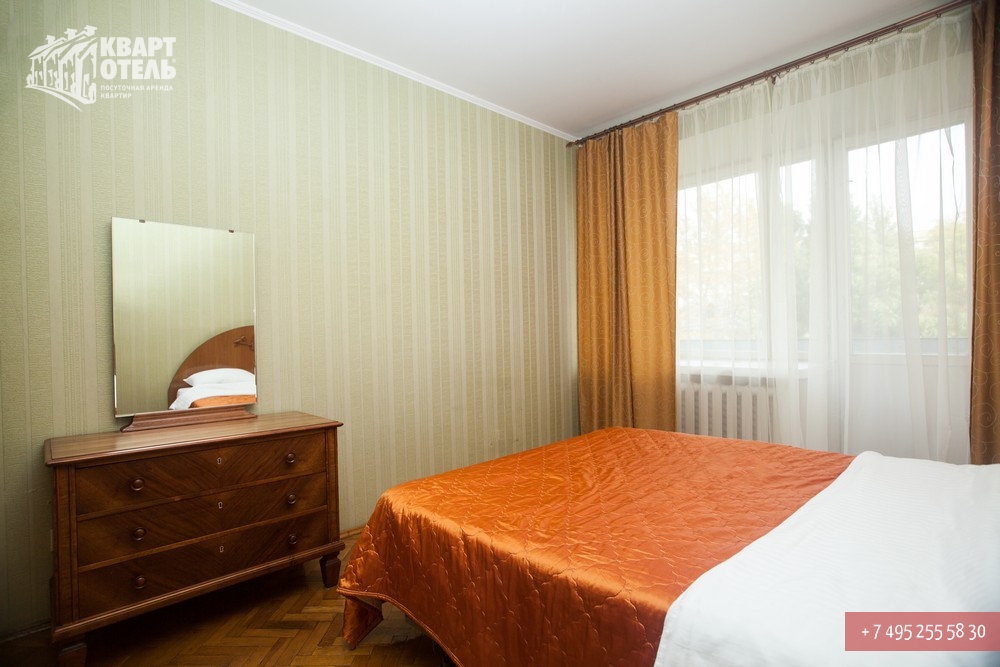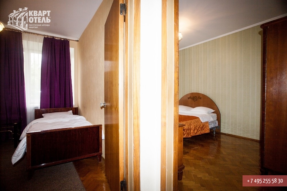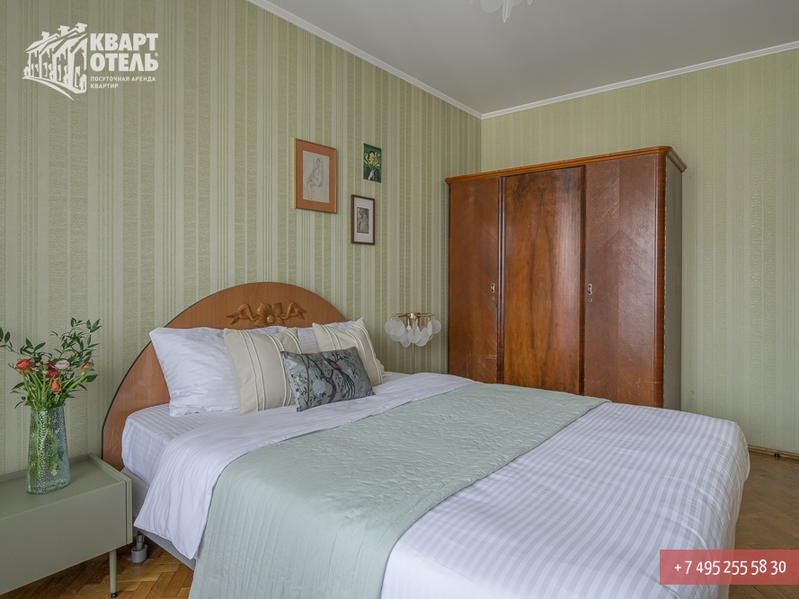 Забронировать эту квартиру Вы можете в службе бронирования по телефону +7 (495) 255 58 30 в будни с 9 до 20 часов, в выходные и праздничные дни с 10 до 18 часов. Оплатить проживание можно безналичным перечислением на наш расчетный счет, наличными в офисе или при заселении на квартире, платежными картами VISA, MasterCard, электронным переводом по системе Яндекс-Деньги. Более подробную информацию о бронировании и способах оплаты Вы можете получить в разделах Услуги и Оплата и скидки.