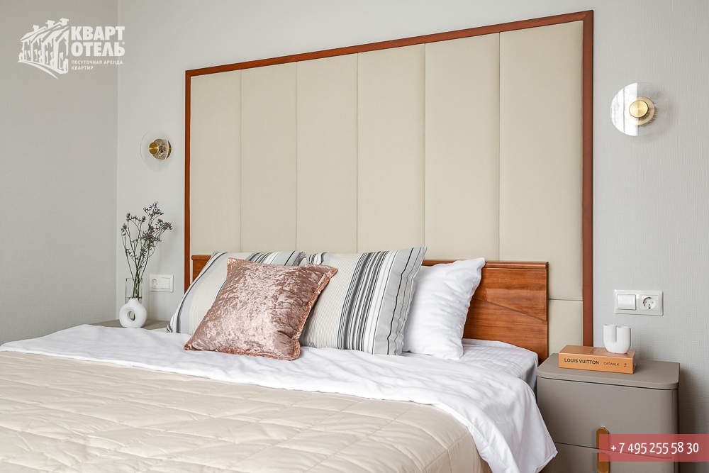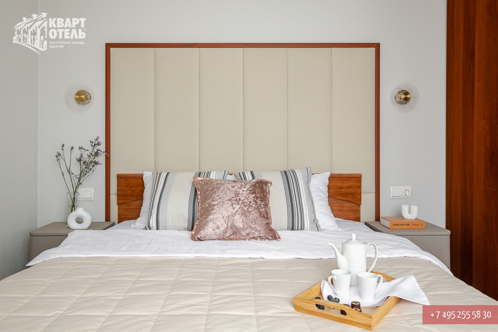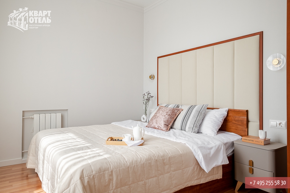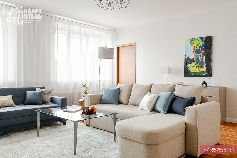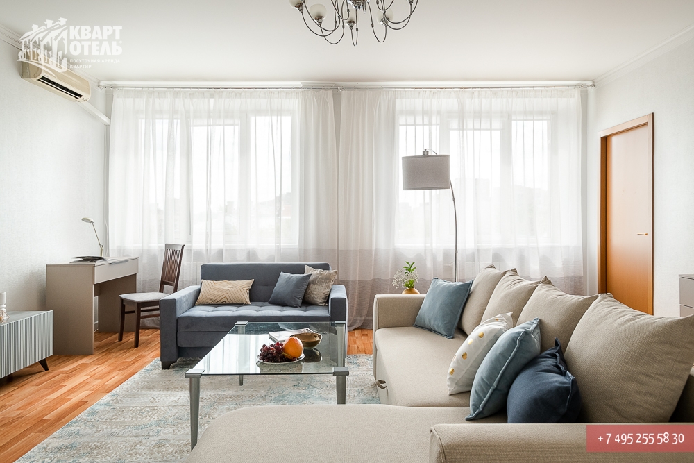 Забронировать эту квартиру Вы можете в службе бронирования по телефону +7 (495) 255 58 30 в будни с 9 до 20 часов, в выходные и праздничные дни с 10 до 18 часов. Оплатить проживание можно безналичным перечислением на наш расчетный счет, наличными в офисе или при заселении на квартире, платежными картами VISA, MasterCard, электронным переводом по системе Яндекс-Деньги. Более подробную информацию о бронировании и способах оплаты Вы можете получить в разделах Услуги и Оплата и скидки.