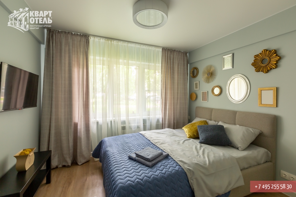Забронировать эту квартиру Вы можете в службе бронирования по телефону +7 (495) 255 58 30 в будни с 9 до 20 часов, в выходные и праздничные дни с 10 до 18 часов. Оплатить проживание можно безналичным перечислением на наш расчетный счет, наличными в офисе или при заселении на квартире, платежными картами VISA, MasterCard, электронным переводом по системе Яндекс-Деньги. Более подробную информацию о бронировании и способах оплаты Вы можете получить в разделах Услуги и Оплата и скидки.