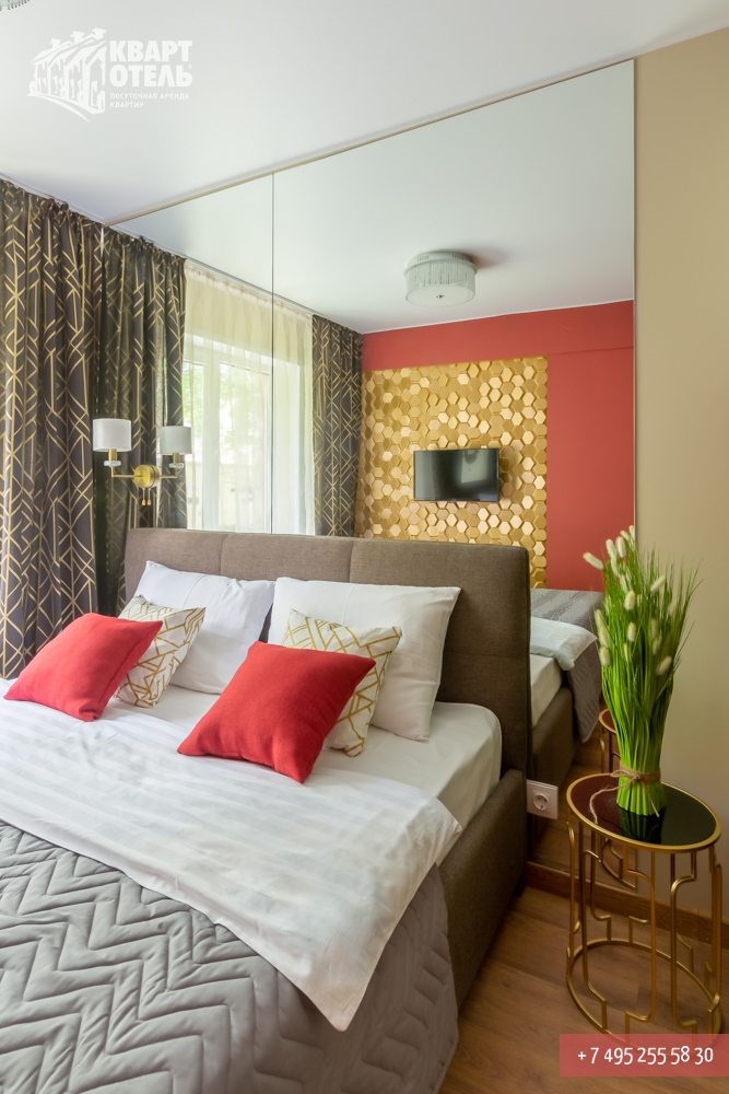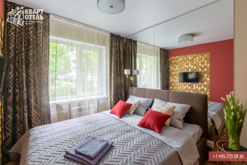 Забронировать эту квартиру Вы можете в службе бронирования по телефону +7 (495) 255 58 30 в будни с 9 до 20 часов, в выходные и праздничные дни с 10 до 18 часов. Оплатить проживание можно безналичным перечислением на наш расчетный счет, наличными в офисе или при заселении на квартире, платежными картами VISA, MasterCard, электронным переводом по системе Яндекс-Деньги. Более подробную информацию о бронировании и способах оплаты Вы можете получить в разделах Услуги и Оплата и скидки.