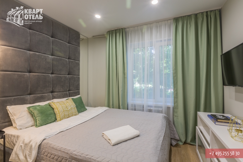 Забронировать эту квартиру Вы можете в службе бронирования по телефону +7 (495) 255 58 30 в будни с 9 до 20 часов, в выходные и праздничные дни с 10 до 18 часов. Оплатить проживание можно безналичным перечислением на наш расчетный счет, наличными в офисе или при заселении на квартире, платежными картами VISA, MasterCard, электронным переводом по системе Яндекс-Деньги. Более подробную информацию о бронировании и способах оплаты Вы можете получить в разделах Услуги и Оплата и скидки.