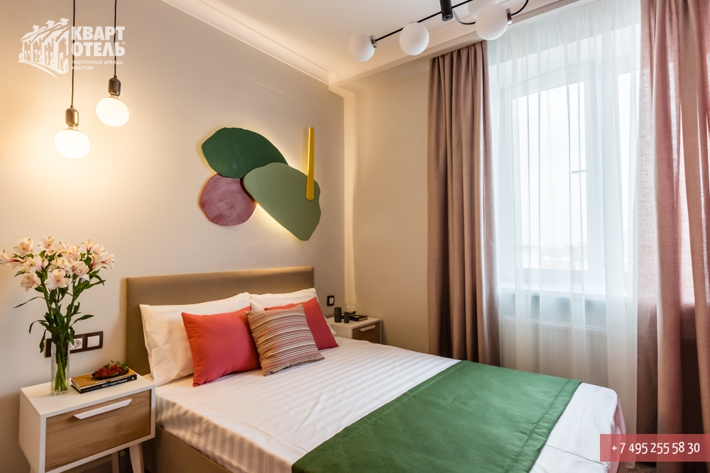 Забронировать эту квартиру Вы можете в службе бронирования по телефону +7 (495) 255 58 30 в будни с 9 до 20 часов, в выходные и праздничные дни с 10 до 18 часов. Оплатить проживание можно безналичным перечислением на наш расчетный счет, наличными в офисе или при заселении на квартире, платежными картами VISA, MasterCard, электронным переводом по системе Яндекс-Деньги. Более подробную информацию о бронировании и способах оплаты Вы можете получить в разделах Услуги и Оплата и скидки.