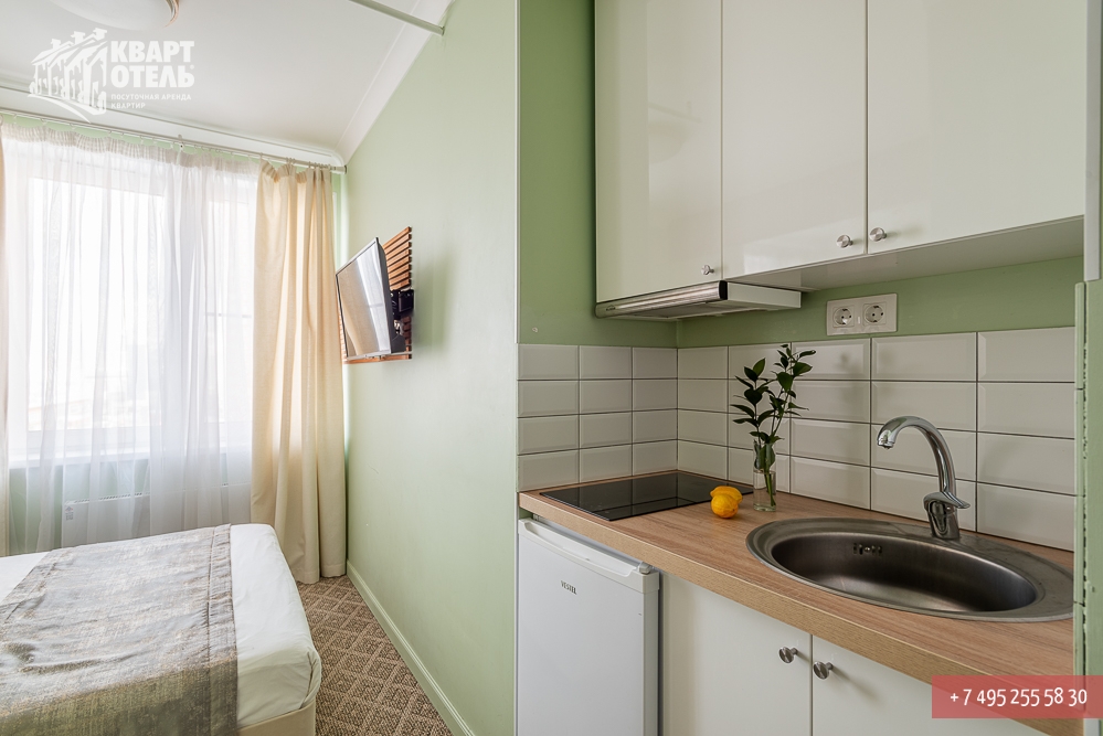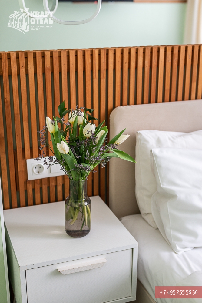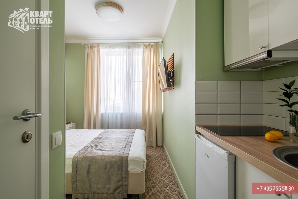 Квартира предназначена для проживания 1 человека при размещении на отдельных спальных местах или 2 человек при совместном размещении на двуспальных местах. В квартире: одна двуспальная кровать.