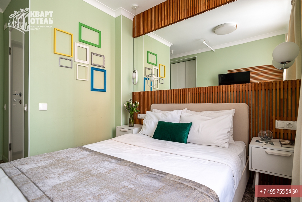 Забронировать эту квартиру Вы можете в службе бронирования по телефону +7 (495) 255 58 30 в будни с 9 до 20 часов, в выходные и праздничные дни с 10 до 18 часов. Оплатить проживание можно безналичным перечислением на наш расчетный счет, наличными в офисе или при заселении на квартире, платежными картами VISA, MasterCard, электронным переводом по системе Яндекс-Деньги. Более подробную информацию о бронировании и способах оплаты Вы можете получить в разделах Услуги и Оплата и скидки.