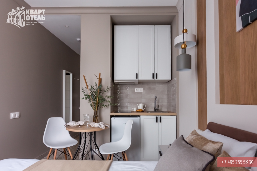 Квартира предназначена для проживания 1 человека при размещении на отдельных спальных местах или 2 человек при совместном размещении на двуспальных местах. В квартире: одна двуспальная кровать.