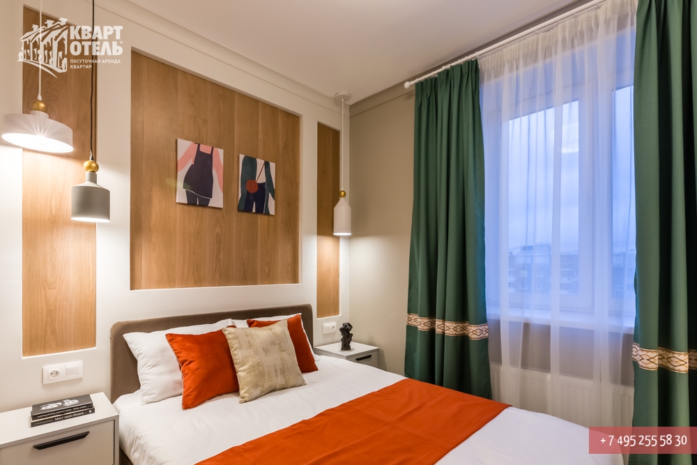 Забронировать эту квартиру Вы можете в службе бронирования по телефону +7 (495) 255 58 30 в будни с 9 до 20 часов, в выходные и праздничные дни с 10 до 18 часов. Оплатить проживание можно безналичным перечислением на наш расчетный счет, наличными в офисе или при заселении на квартире, платежными картами VISA, MasterCard, электронным переводом по системе Яндекс-Деньги. Более подробную информацию о бронировании и способах оплаты Вы можете получить в разделах Услуги и Оплата и скидки.