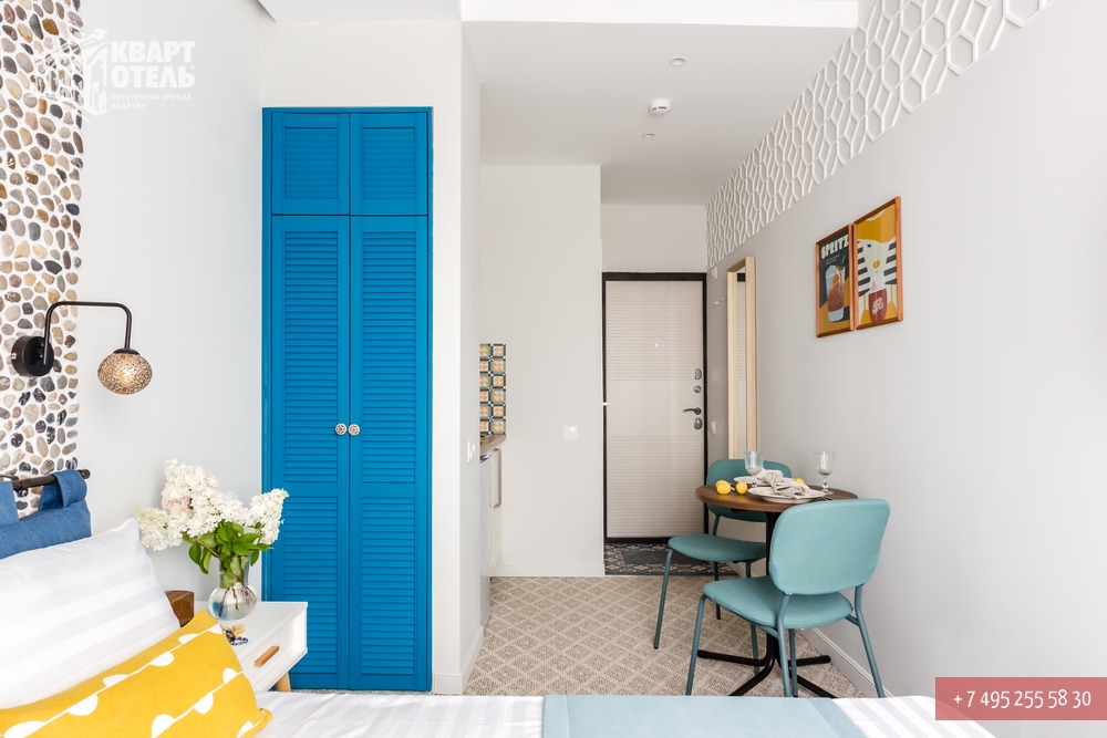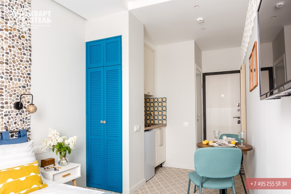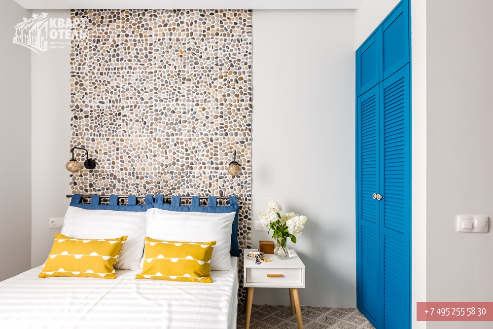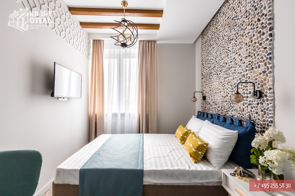 Квартира предназначена для проживания 1 человека при размещении на отдельных спальных местах или 2 человек при совместном размещении на двуспальных местах. В квартире: одна двуспальная кровать.