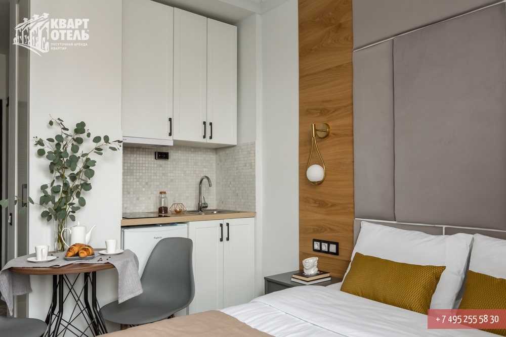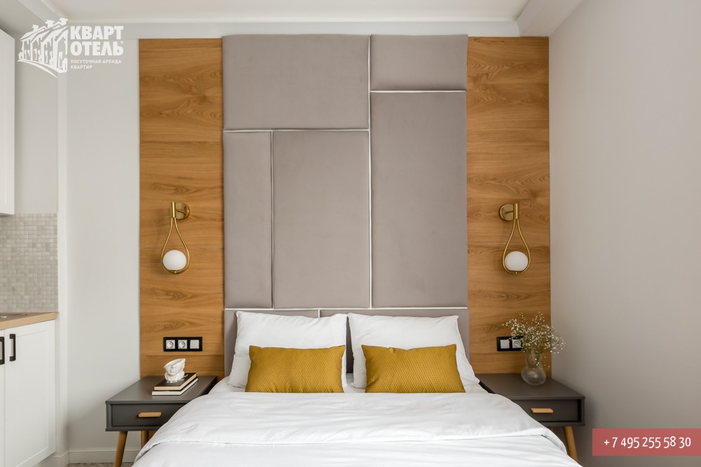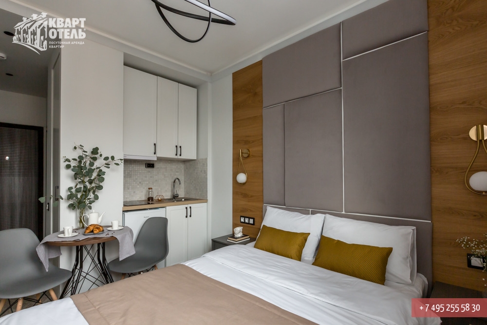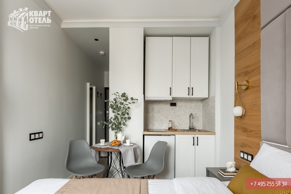 Квартира предназначена для проживания 1 человека при размещении на отдельных спальных местах или 2 человек при совместном размещении на двуспальных местах. В квартире: одна двуспальная кровать.