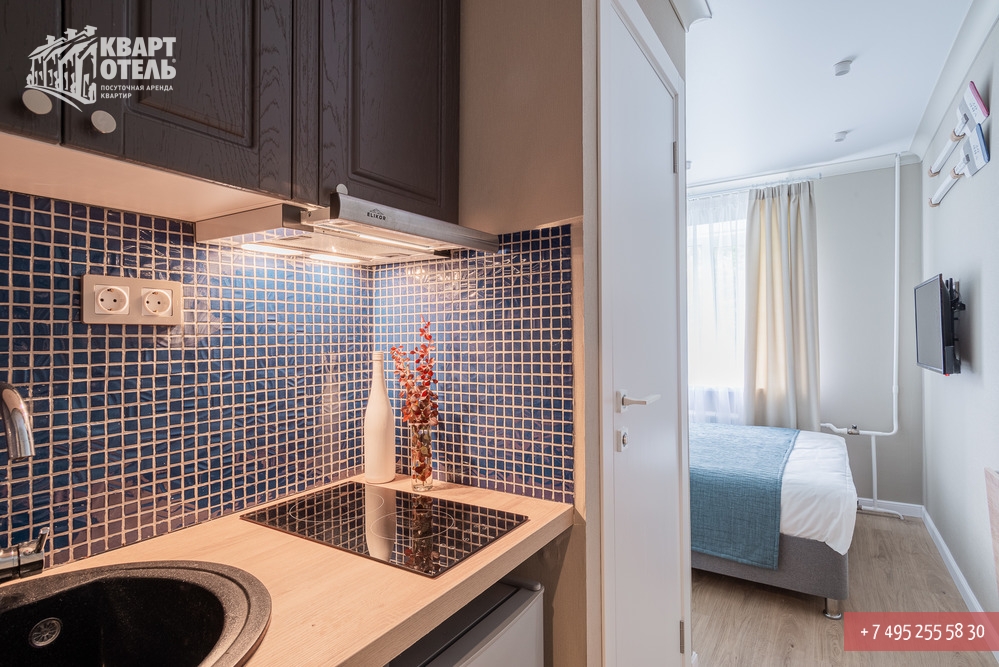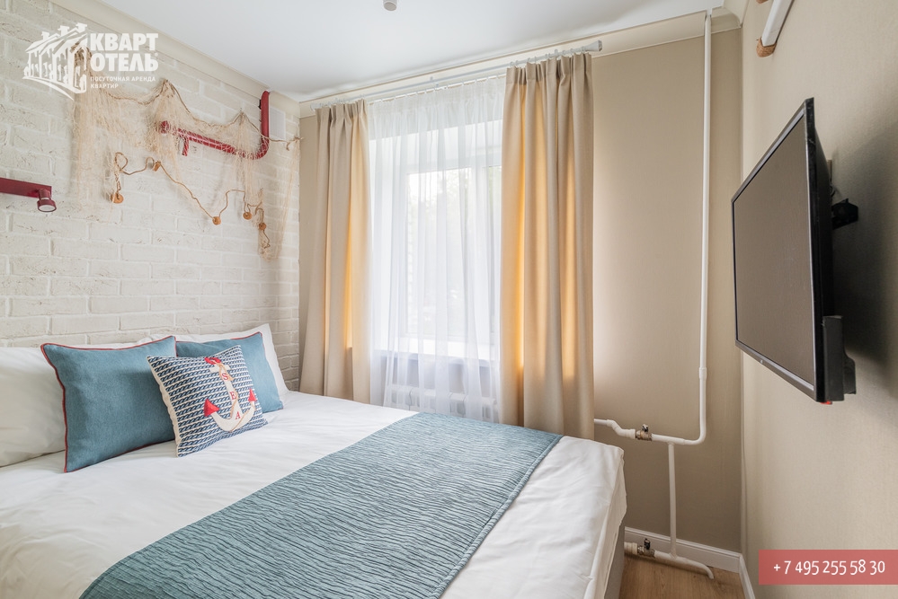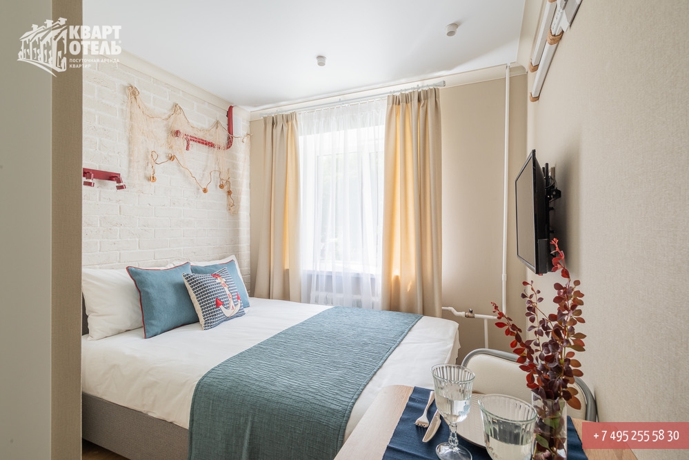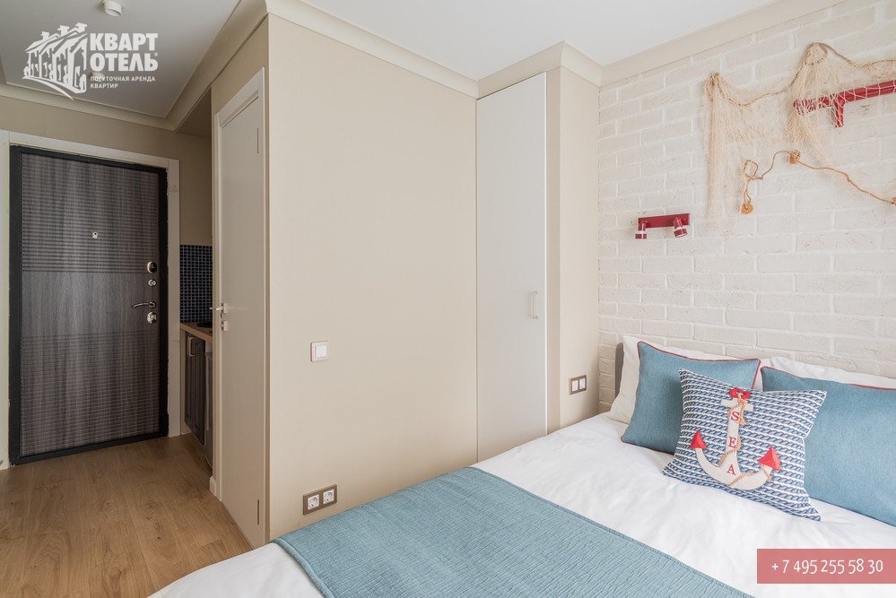 Квартира предназначена для проживания 1 человека при размещении на отдельных спальных местах или 2 человек при совместном размещении на двуспальных местах. В квартире: одна двуспальная кровать.