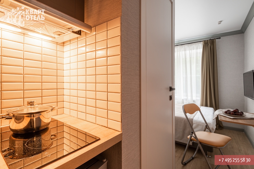 Квартира предназначена для проживания 1 человека при размещении на отдельных спальных местах или 2 человек при совместном размещении на двуспальных местах. В квартире: одна двуспальная кровать.
