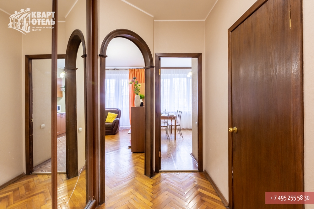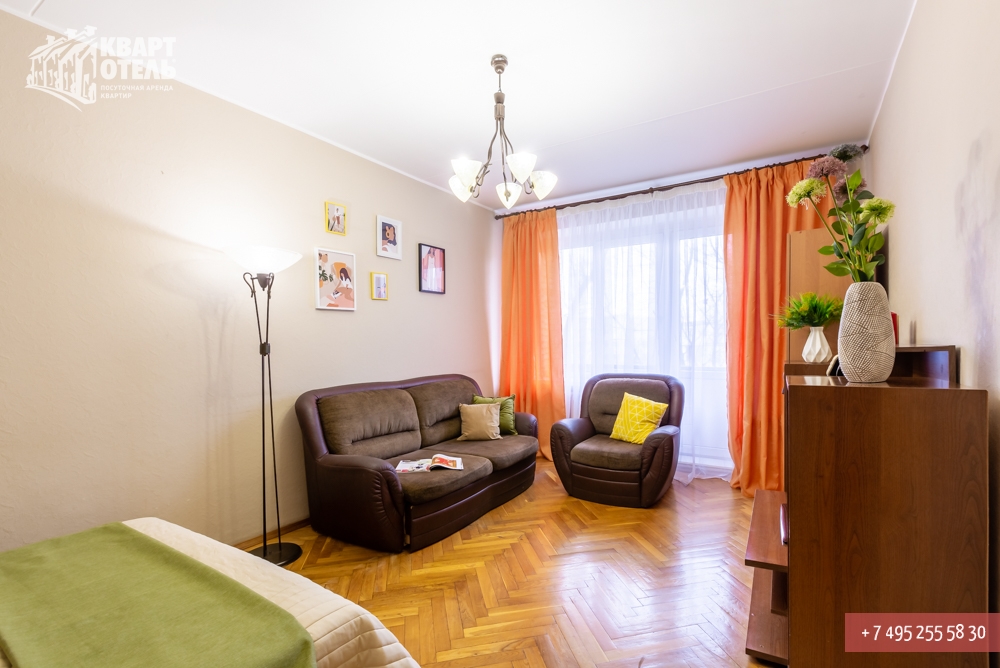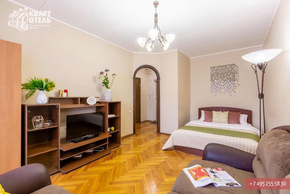 Забронировать эту квартиру Вы можете в службе бронирования по телефону +7 (495) 255 58 30 в будни с 9 до 20 часов, в выходные и праздничные дни с 10 до 18 часов. Оплатить проживание можно безналичным перечислением на наш расчетный счет, наличными в офисе или при заселении на квартире, платежными картами VISA, MasterCard, электронным переводом по системе Яндекс-Деньги. Более подробную информацию о бронировании и способах оплаты Вы можете получить в разделах Услуги и Оплата и скидки.