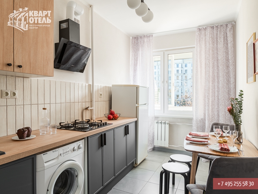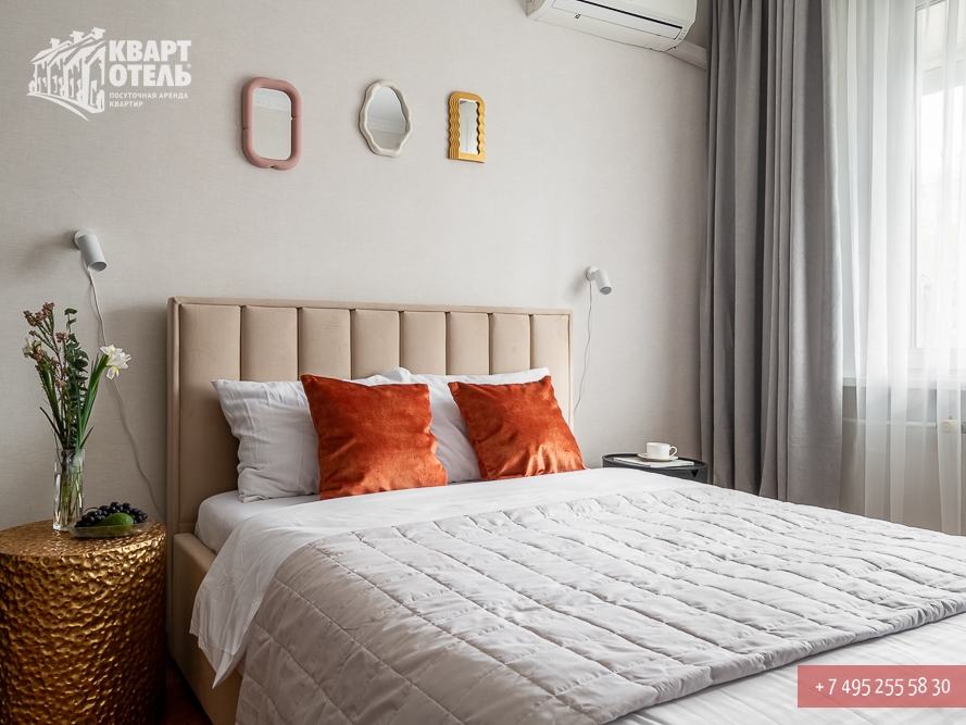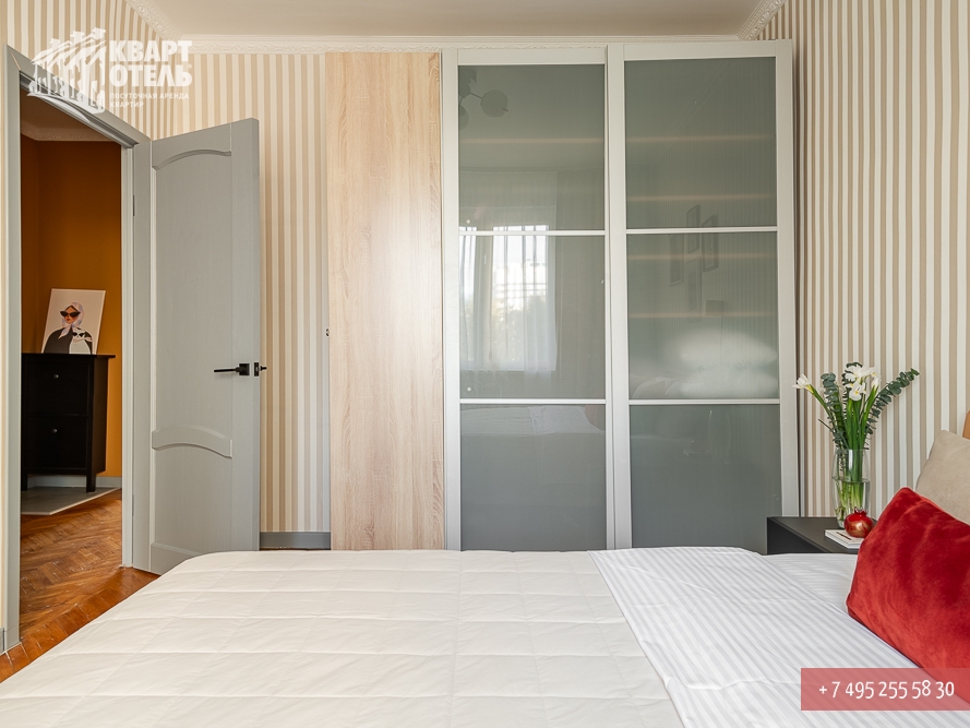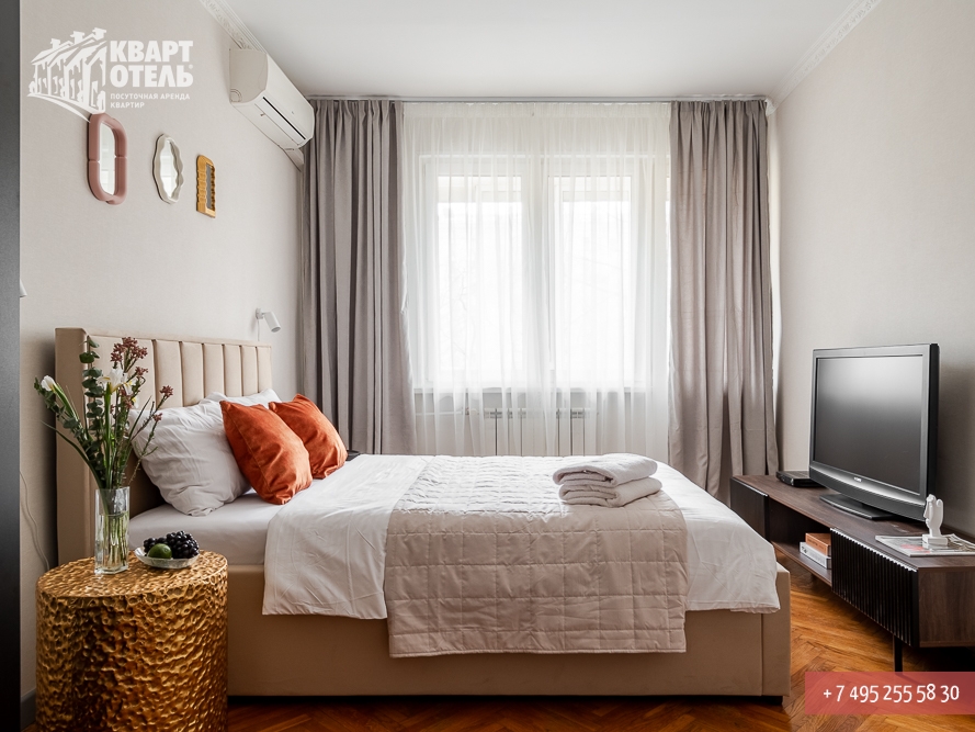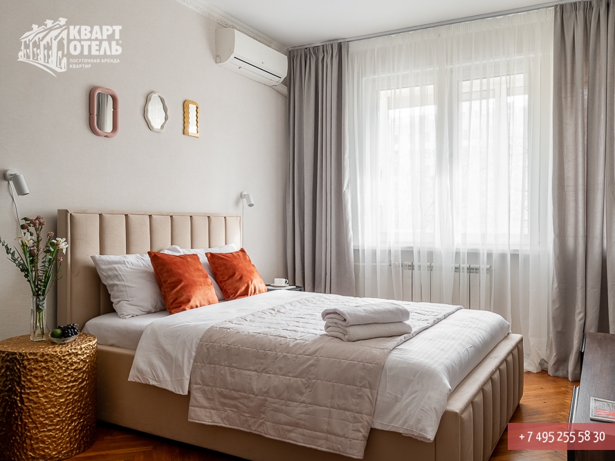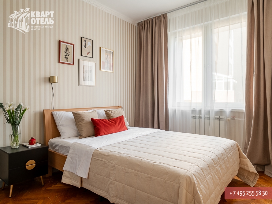 Забронировать эту квартиру Вы можете в службе бронирования по телефону +7 (495) 255 58 30 в будни с 9 до 20 часов, в выходные и праздничные дни с 10 до 18 часов. Оплатить проживание можно безналичным перечислением на наш расчетный счет, наличными в офисе или при заселении на квартире, платежными картами VISA, MasterCard, электронным переводом по системе Яндекс-Деньги. Более подробную информацию о бронировании и способах оплаты Вы можете получить в разделах Услуги и Оплата и скидки.