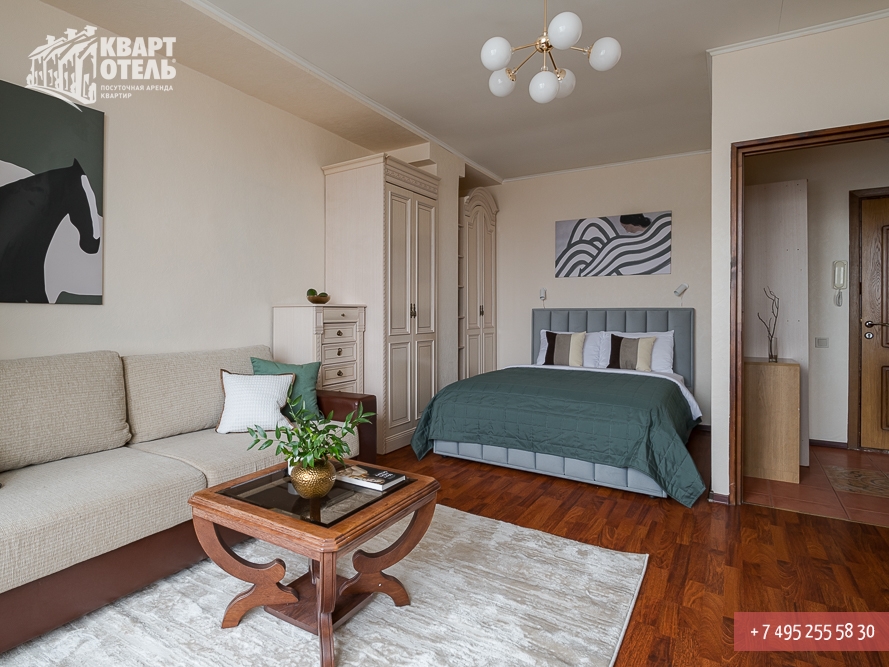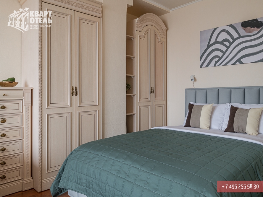 Забронировать эту квартиру Вы можете в службе бронирования по телефону +7 (495) 255 58 30 в будни с 9 до 20 часов, в выходные и праздничные дни с 10 до 18 часов. Оплатить проживание можно безналичным перечислением на наш расчетный счет, наличными в офисе или при заселении на квартире, платежными картами VISA, MasterCard, электронным переводом по системе Яндекс-Деньги. Более подробную информацию о бронировании и способах оплаты Вы можете получить в разделах Услуги и Оплата и скидки.