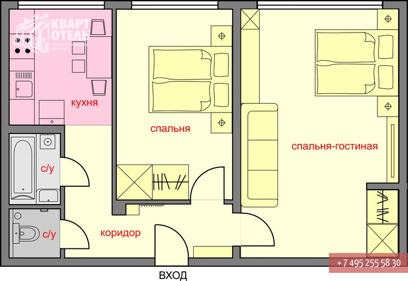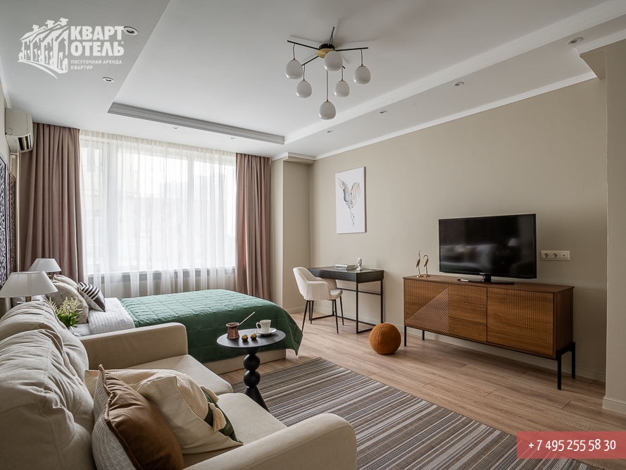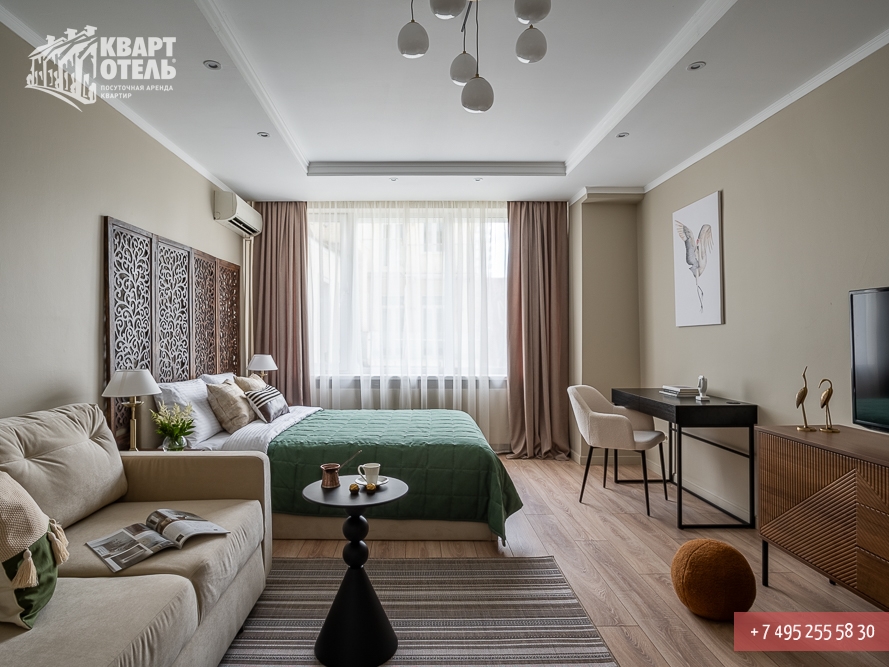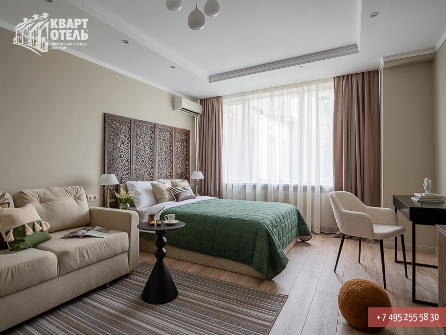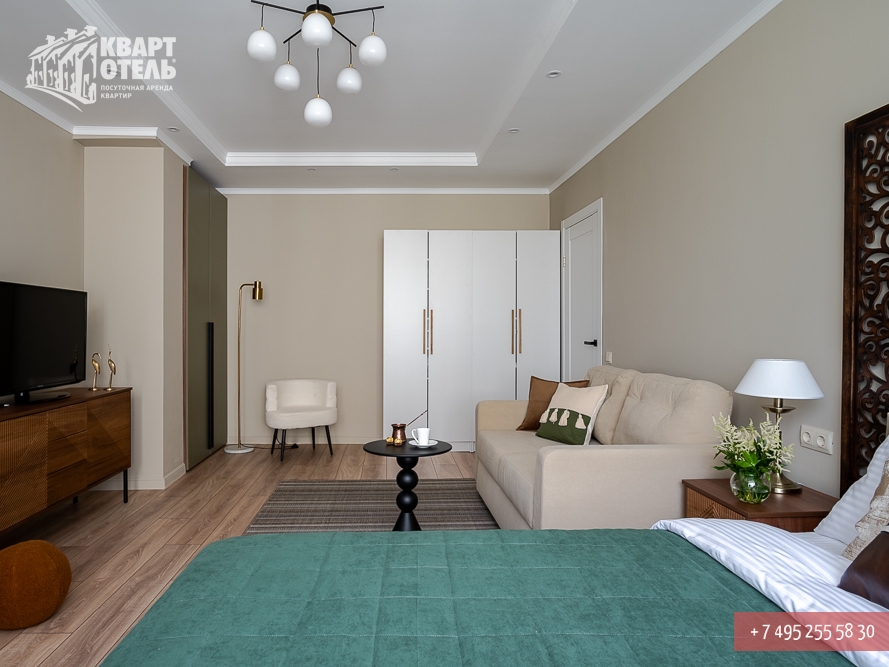 Забронировать эту квартиру Вы можете в службе бронирования по телефону +7 (495) 255 58 30 в будни с 9 до 20 часов, в выходные и праздничные дни с 10 до 18 часов. Оплатить проживание можно безналичным перечислением на наш расчетный счет, наличными в офисе или при заселении на квартире, платежными картами VISA, MasterCard, электронным переводом по системе Яндекс-Деньги. Более подробную информацию о бронировании и способах оплаты Вы можете получить в разделах Услуги и Оплата и скидки.